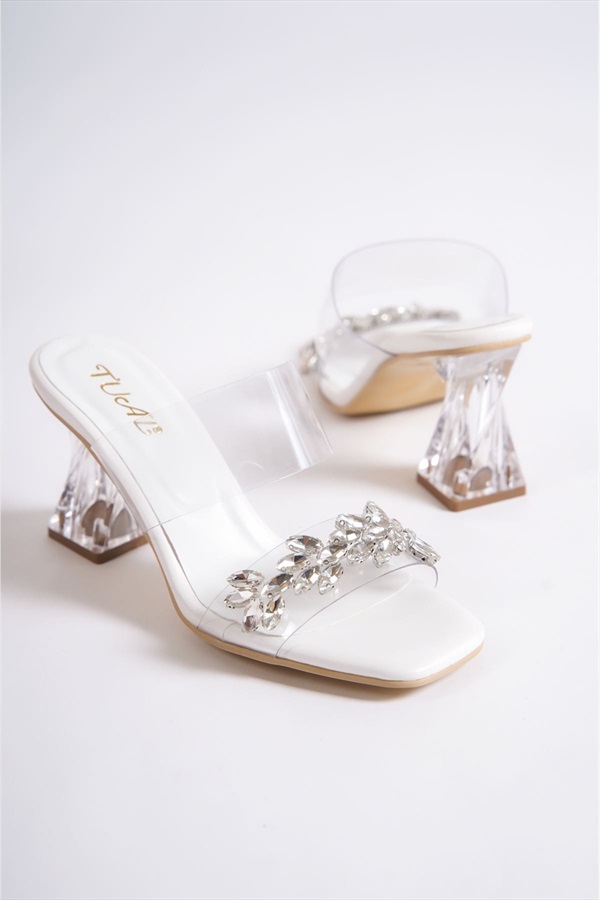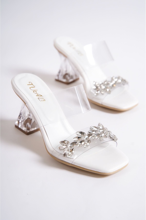 Ewro Beyaz Cilt Şeffaf Bantlı Terlik