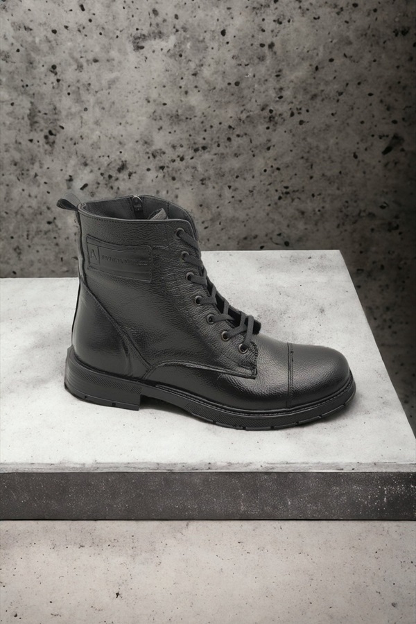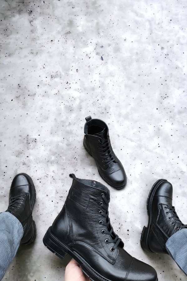 Gerçek Deri Erkek Siyah Postal Bot