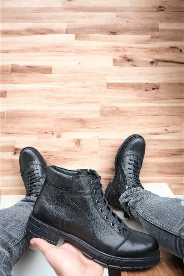 Gerçek Deri Yandan Fermuarlı Bot 1003