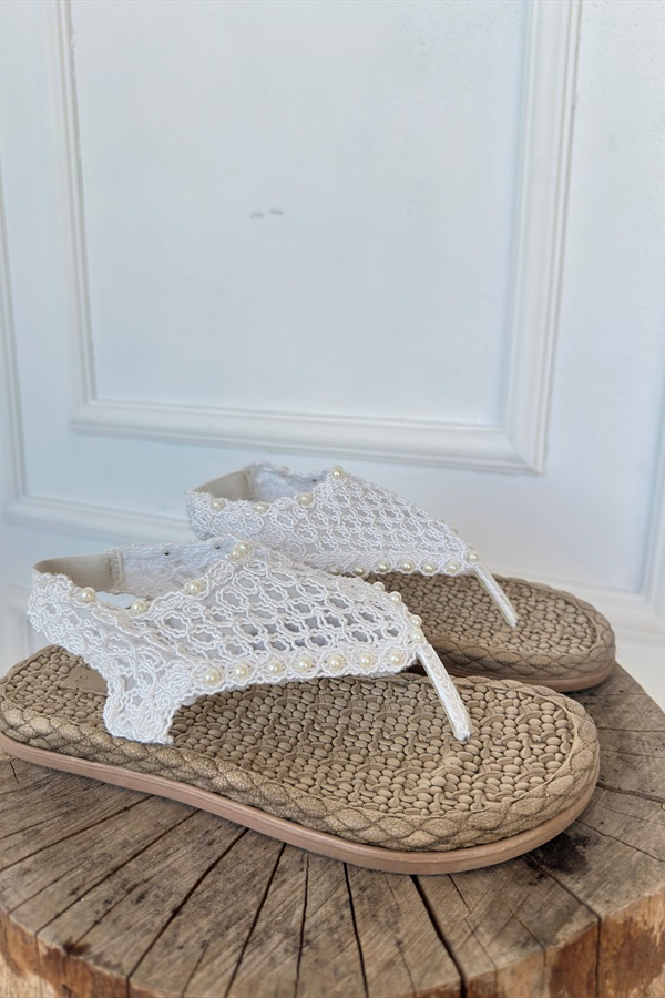 Mayya Beyaz Örgülü Sandalet