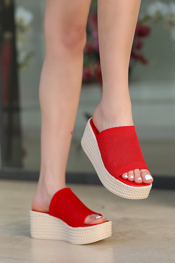 Tiona Kırmızı Triko Dolgu Topuk Terlik